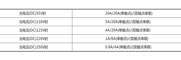 4觸點斷開容量: AC,250V,10A(COS(p>0.4),1000VA; DC, 250V, 5A(L/R<40ms) , 100W。