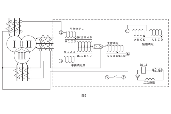 當用BCH-2型繼電器來保護電力變壓器時,平衡繞組的圈數根據這樣的條件來選擇,即當發生穿越短路時.所有繞組的匝數應相等。