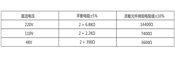 繼電器動作值:當母線任何一側對地絕緣電阻下降到下表規(guī)定值時,繼電器應可靠動作。