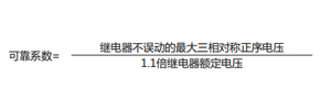 在最小整定值下,繼電器施加1.1倍對稱的正序額定電壓繼電器不應誤動,可靠系數不小于2。